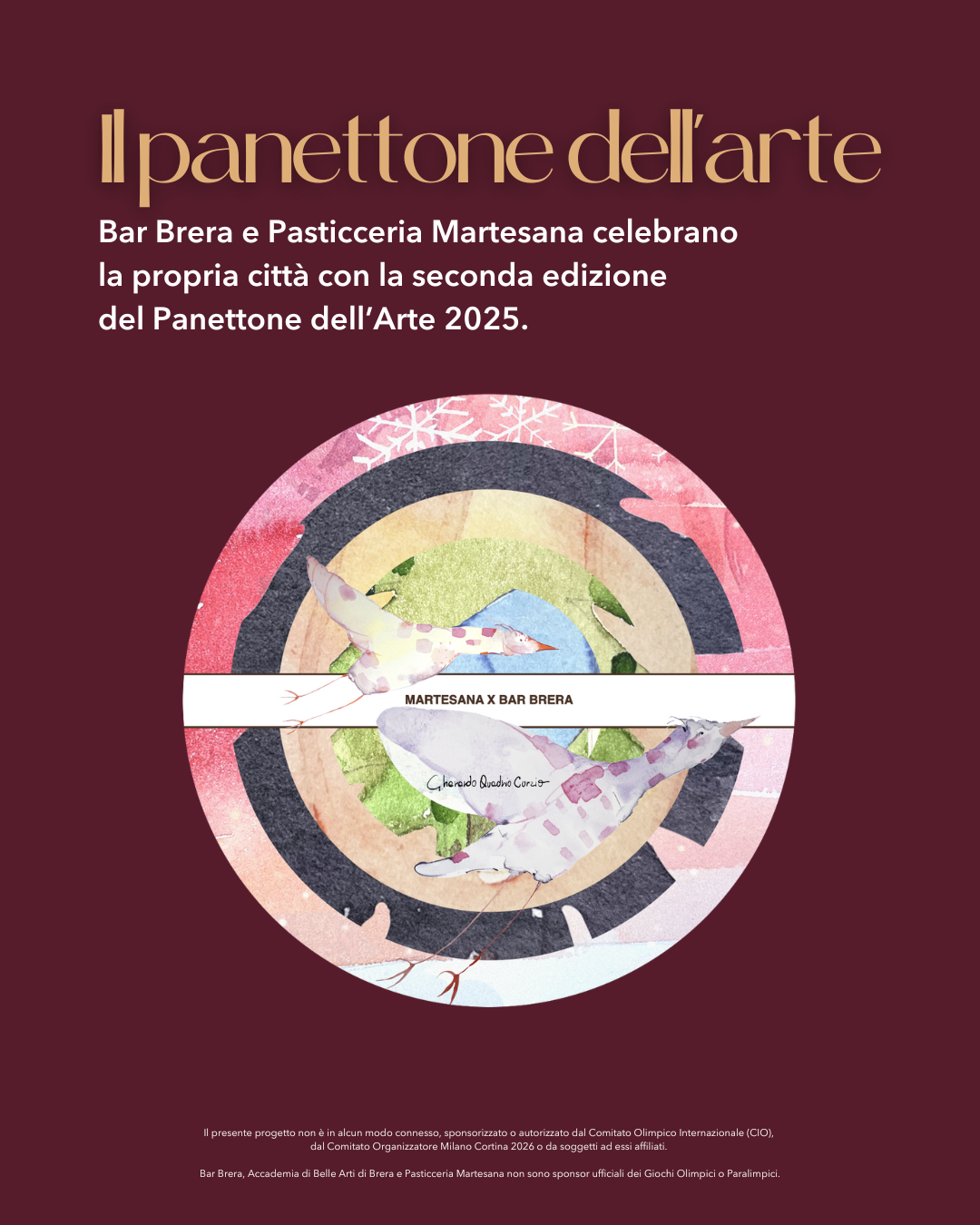 Milan, October 2025 – In a year in which Milan is preparing to host major international events and experience a winter of great cultural and sporting vitality, Bar Brera and Pasticceria Martesana celebrate the city with the second edition of the Panettone dell’Arte 2025. A project that once again brings together artisan excellence, contemporary art and a spirit of sharing, thanks to the collaboration with the Brera Academy of Fine Arts, and which fits into the broader narrative of a creative, Olympic, and deeply identity-driven Milan.