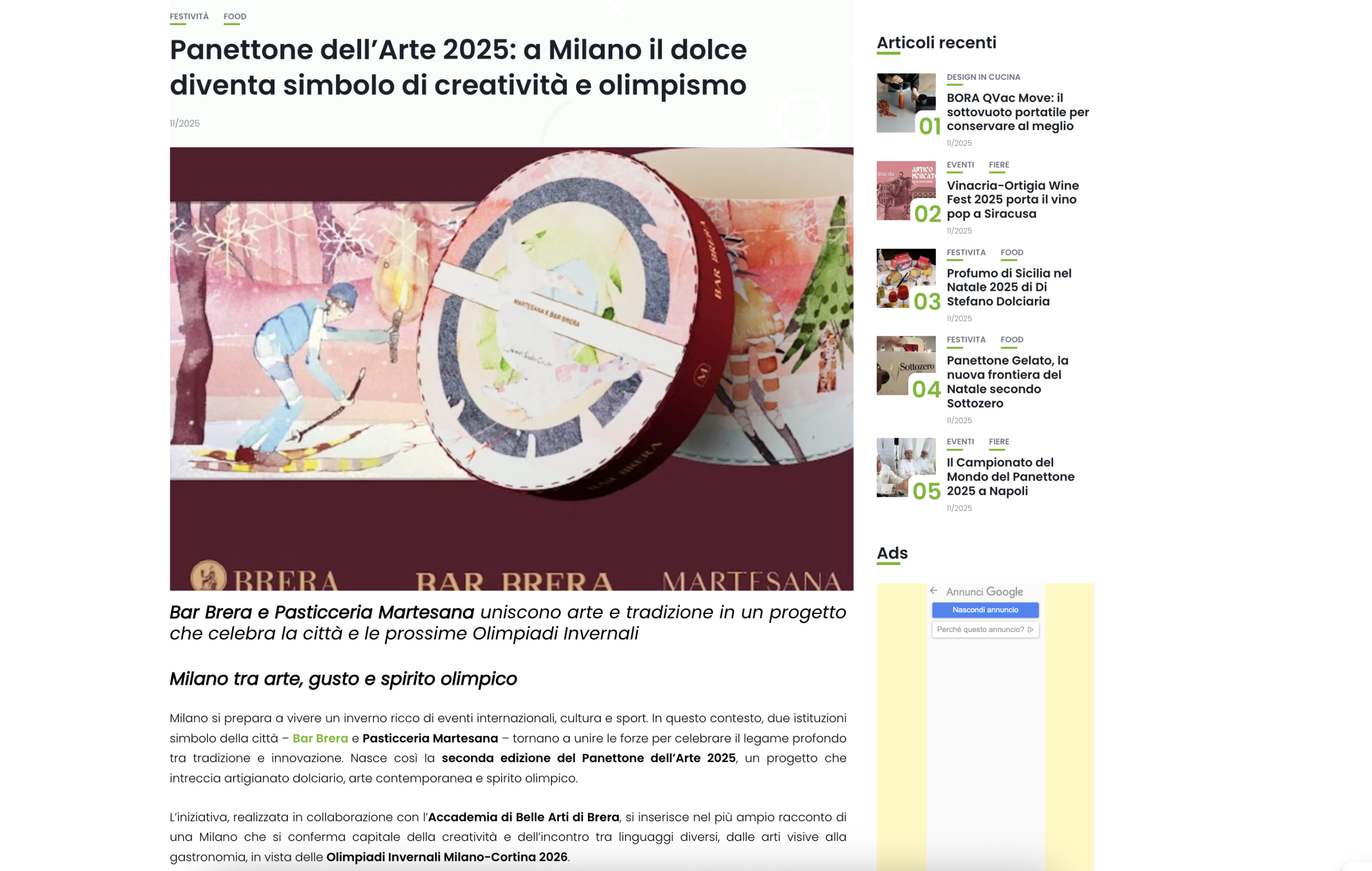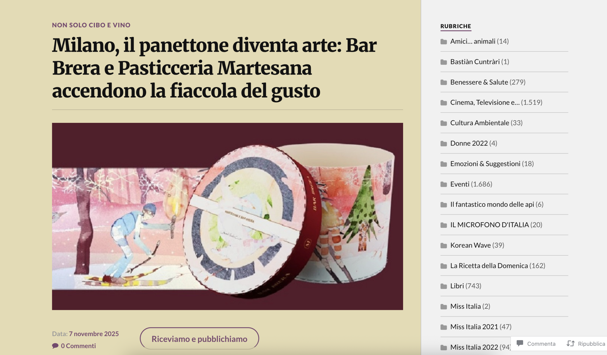 15/11/2024 - The first dessert created by the historic venue tells the story of two Milanese traditions. It is called the “Panettone of Art” and is the result of a collaboration between Bar Brera and the Martesana pastry shop, founded in 1966, today recognized with Three Gambero Rosso Cakes...