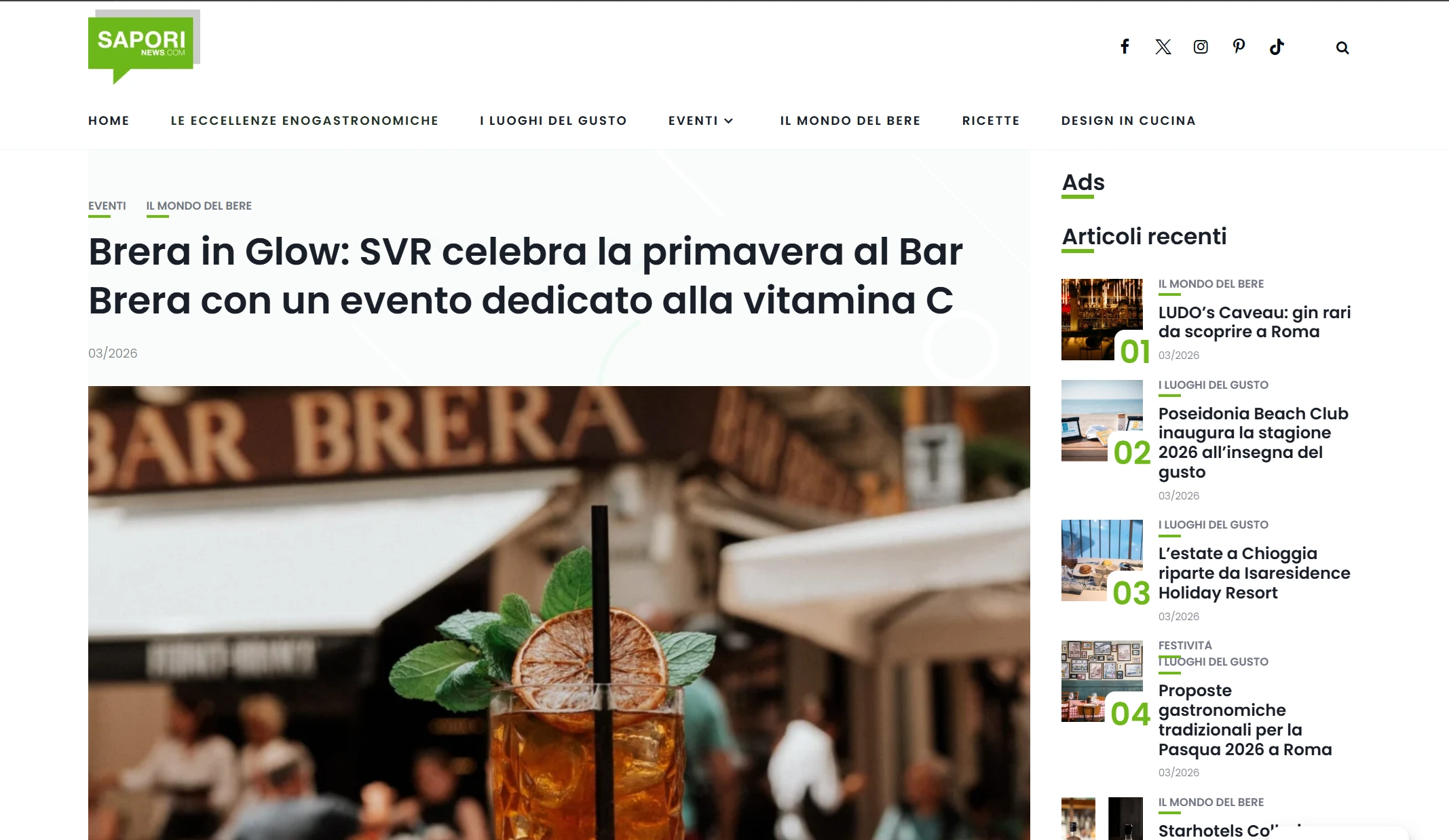 Brera in Glow: SVR celebrates spring at Bar Brera with an event dedicated to Vitamin C